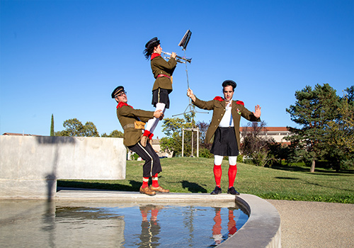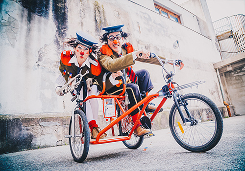 En trio avec musicien et en quatuor avec triporteur accidentogène.